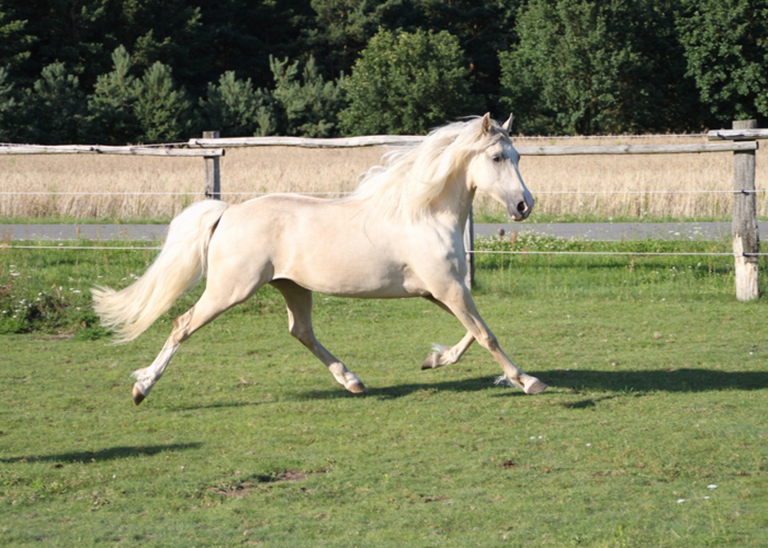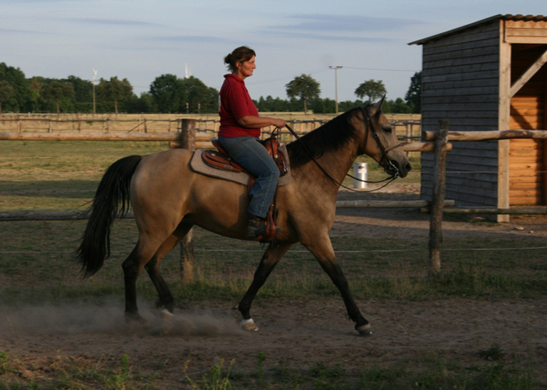 Eine wunderschöne gelbe Rose aus Texas, ihr mächtiger Behang ist ihr Markenzeichen und macht sie zu einem ganz besonderen Foxtrotter. Sie hat einen enormen Raumgriff und sehr gute Gänge. Ihr absolut cooles und liebevolles Wesen gibt sie an ihre Kinder weiter. Sie geht alleine und in der Gruppe ins Gelände, absolut sicher mit sehr bequemen Gängen. Anfänger und ängstliche Reiter sind bei ihr gut aufgehoben.